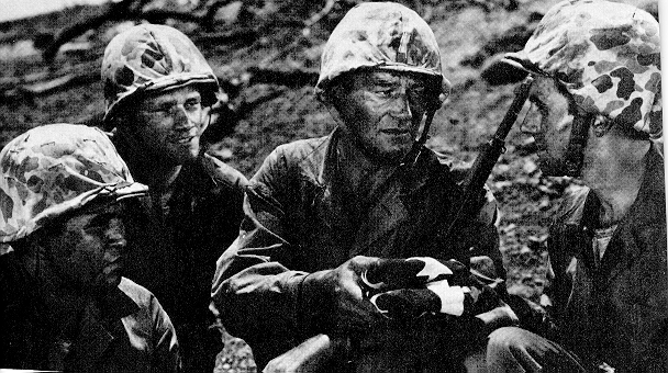 From left, Ira Hayes, John Bradley, John Wayne and Rene Gagnon.