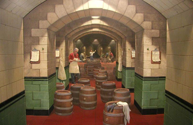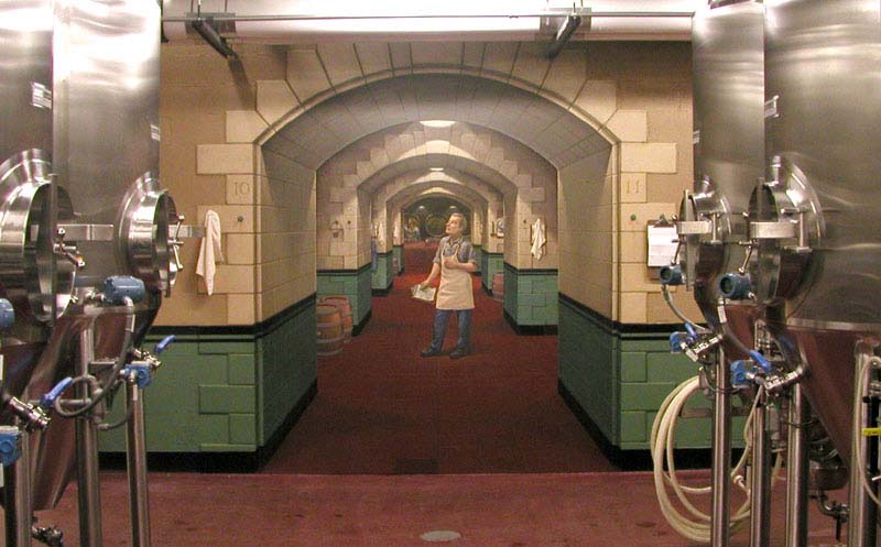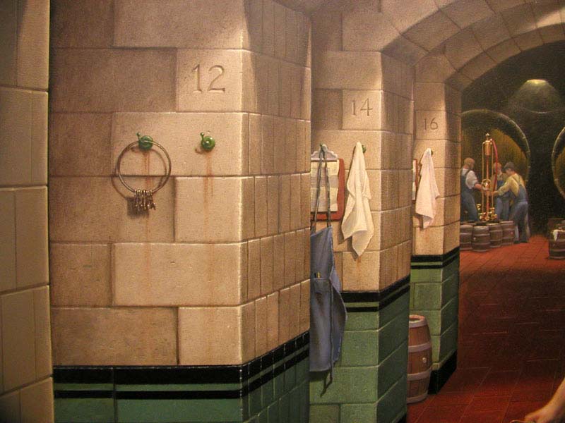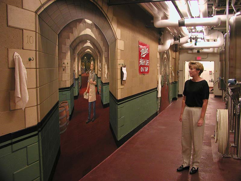 How many birds, would you guess, fly into this wall on a daily basis? Indoor murals at the Miller Brewery. A hallway in the Miller Brewery fermenting room. Hooks,