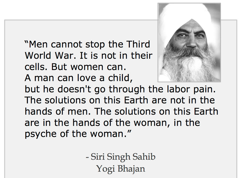 See Women Warriors. See Jai Jagdeesh Kaur's Ad Guray Nameh. LifeAccordingToYogiBhajan.com Pages And Points To Ponder Memories, Moments, and Missives See more at 3HOLegacyLinks.com. Memories to share? Register here. Pages And Points To Ponder How